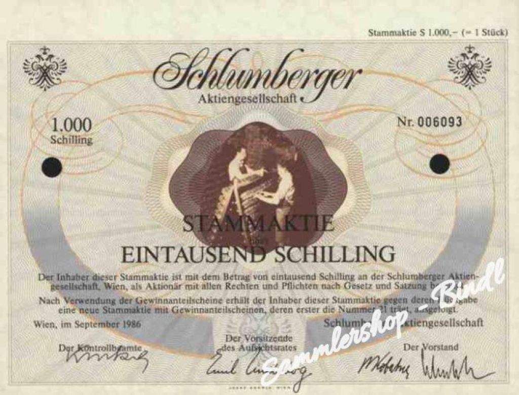 SCHLUMBERGER AG! 1000 Schilling Stammaktie !
