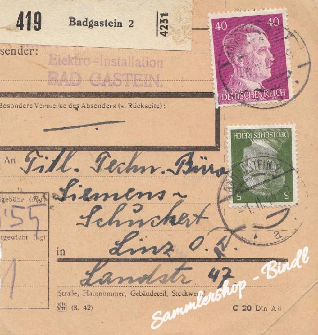 Sammlershop / POST&ORTSGESCHICHTE / ÖSTERREICH / Paketkarte