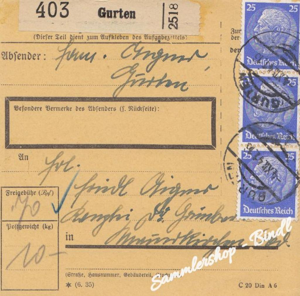 Sammlershop / POST&ORTSGESCHICHTE / ÖSTERREICH / Paketkarte