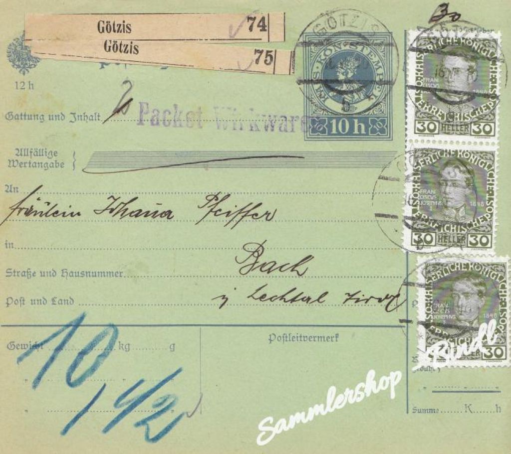 Sammlershop / POST&ORTSGESCHICHTE / ÖSTERREICH / Paketkarte