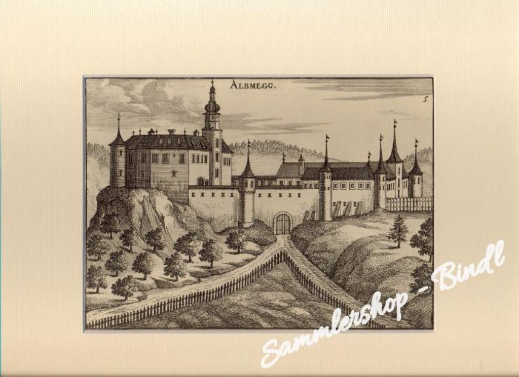 ORIGINAL Kupferstich von Vischer um 167"Almegg" Bild 15x20 cm,mit Passepartout30x24 cm,Ausgabe 1923