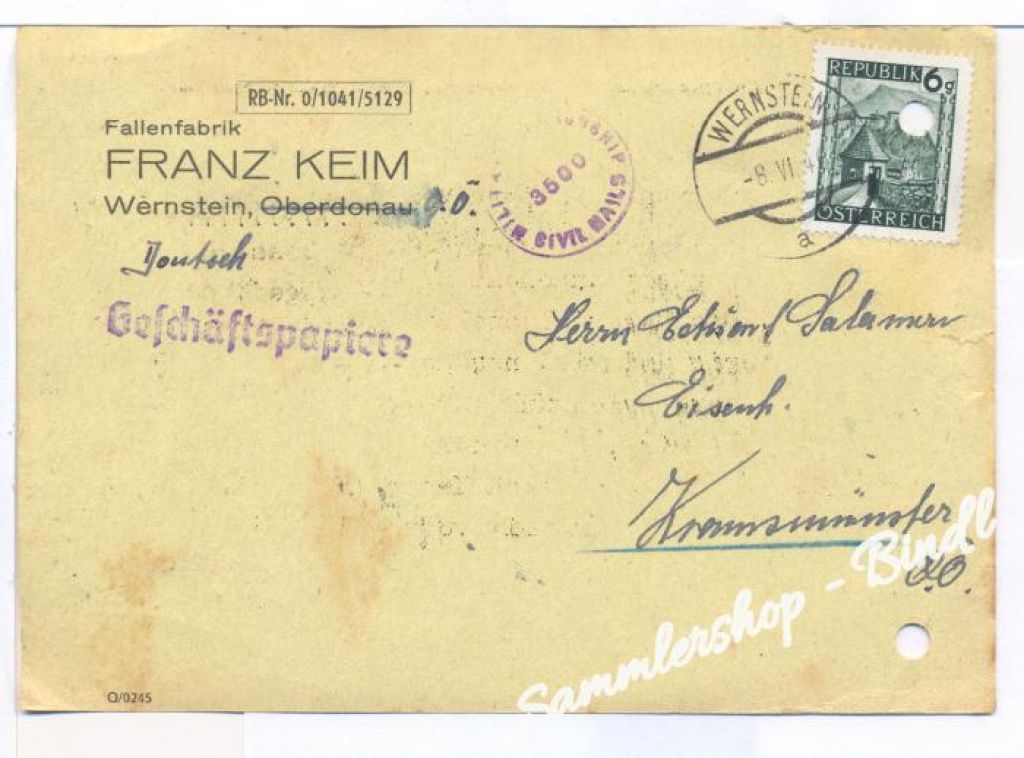 Sammlershop / POST&ORTSGESCHICHTE / ÖSTERREICH / Postkarte