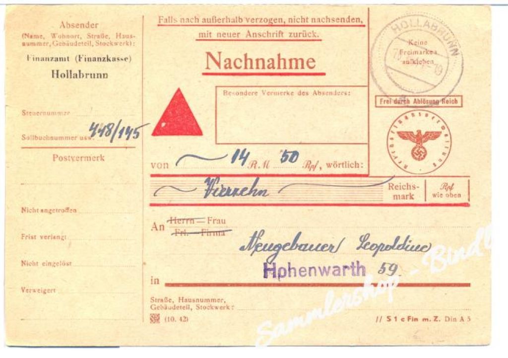 Sammlershop / POST&ORTSGESCHICHTE / ÖSTERREICH / Nachnahme-Karte