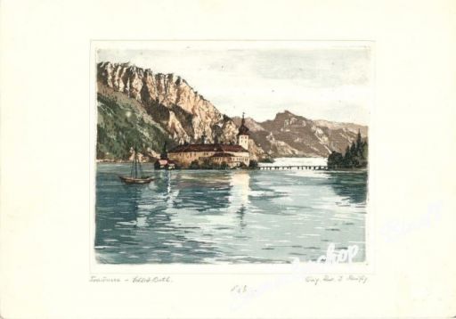 ORGINAL RADIERUNG SCHLOSS ORTH von J.RAUFIG! Seidenradierung! Bild 21x17 cm!