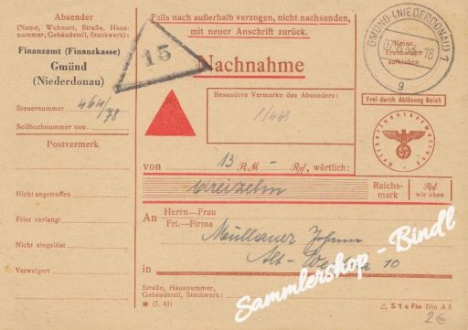 Sammlershop / POST&ORTSGESCHICHTE / ÖSTERREICH / Nachnahme-Karte