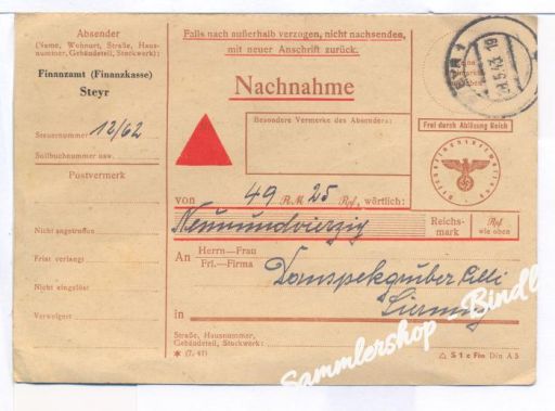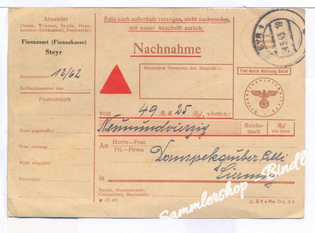 Sammlershop / POST&ORTSGESCHICHTE / ÖSTERREICH / Nachnahme-Karte