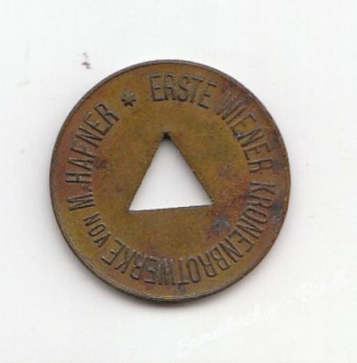 Erste Wiener Kronenbrotwerke von M.HAFNER, dm 2cm Die Erste Wiener Kronenbrot-Werke wurden um 1895 gegründet als eine kleine Schwarz- und Weißbäckerei entwickelt, die rasch erfolgreich wurde. Beliefert wurden unter anderem der Adel und der kaiserliche Hof. Für seine Verdienste erhielt der Inhaber Moritz Hafner den Titel eines k.u.k. Hoflieferanten.