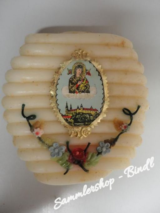 Wachstöckl mit Bild von Maria Pucheim 9x9 cm, mit Orginal Schacchtel